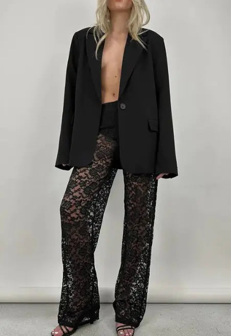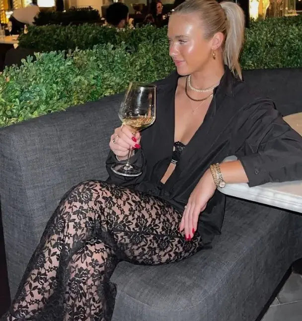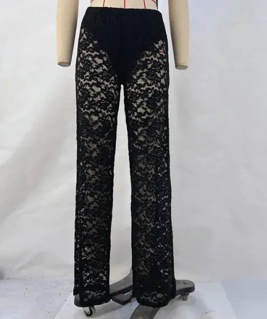 Elegant Lace Details: The pants feature intricate lace inserts that provide a see-through effect, adding a touch of sophistication and sensuality to your ensemble. The lace detailing enhances the overall design, making these pants stand out.